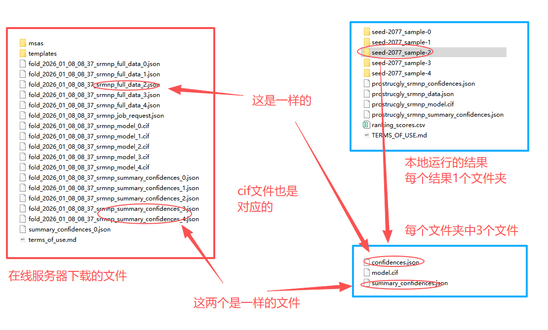 2、在线下载的结果和本地Linux服务器运行的结果在文件命名和文件目录存在差异,具体的查看下图。
